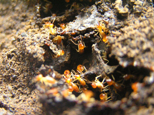 Termites live in colonies, typically in wood or soil. They live by eating wood ...